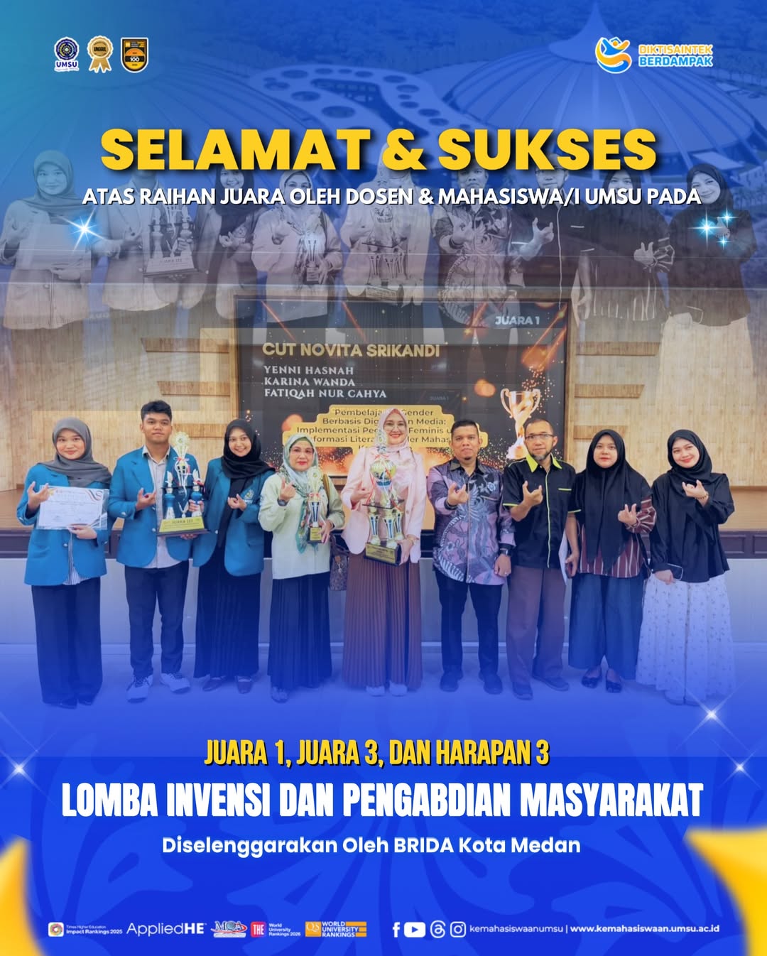 Dosen dan mahasiswa Universitas Muhammadiyah Sumatera Utara (UMSU) meraih sejumlah penghargaan pada ajang Lomba Invensi & Pengabdian Masyarakat yang diselenggarakan oleh BRIDA Kota Medan.