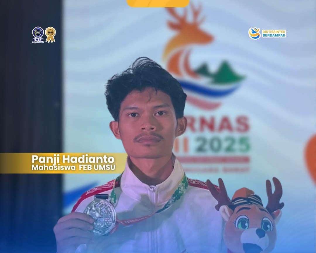Panji Hadianto, mahasiswa Fakultas Ekonomi dan Bisnis (FEB) Universitas Muhammadiyah Sumatera Utara (UMSU), berhasil mengharumkan nama kampus dengan meraih Medali Perak dalam ajang Festival Olahraga Masyarakat Nasional (Fornas) VIII 2025 yang berlangsung di Nusa Tenggara Barat.